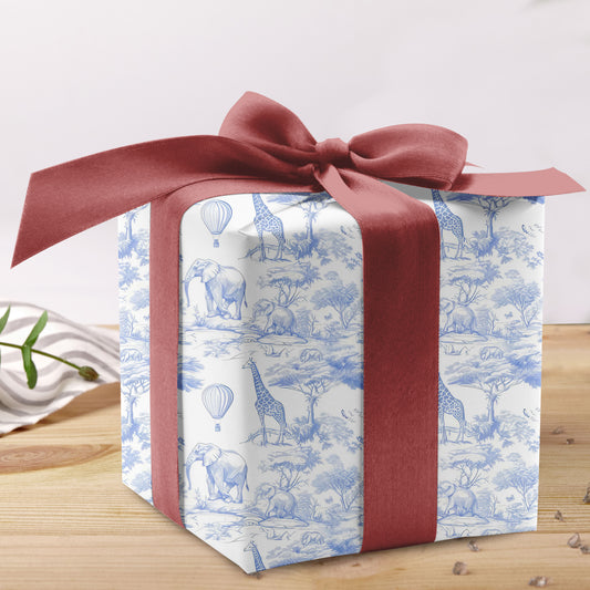 Tissu Jersey Toile de Jouy Safari Bleu Wrapping Paper