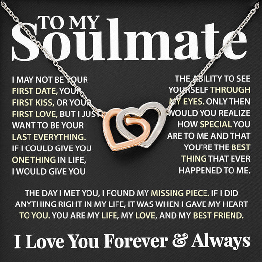 To My Soulmate Necklace Romantic Jewelry Gift with Message Card for Birthday Anniversary