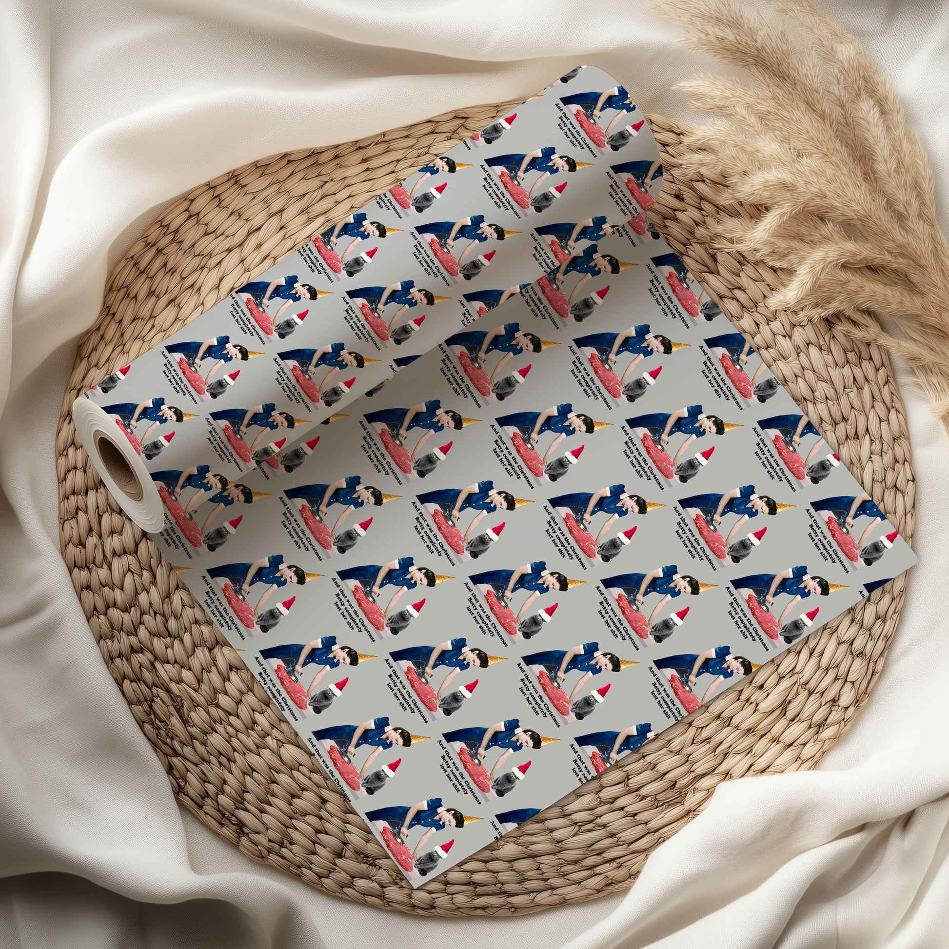 And that was the christmas betty completely lost her shit, Funny Stressed Lady Christmas Wrapping Paper