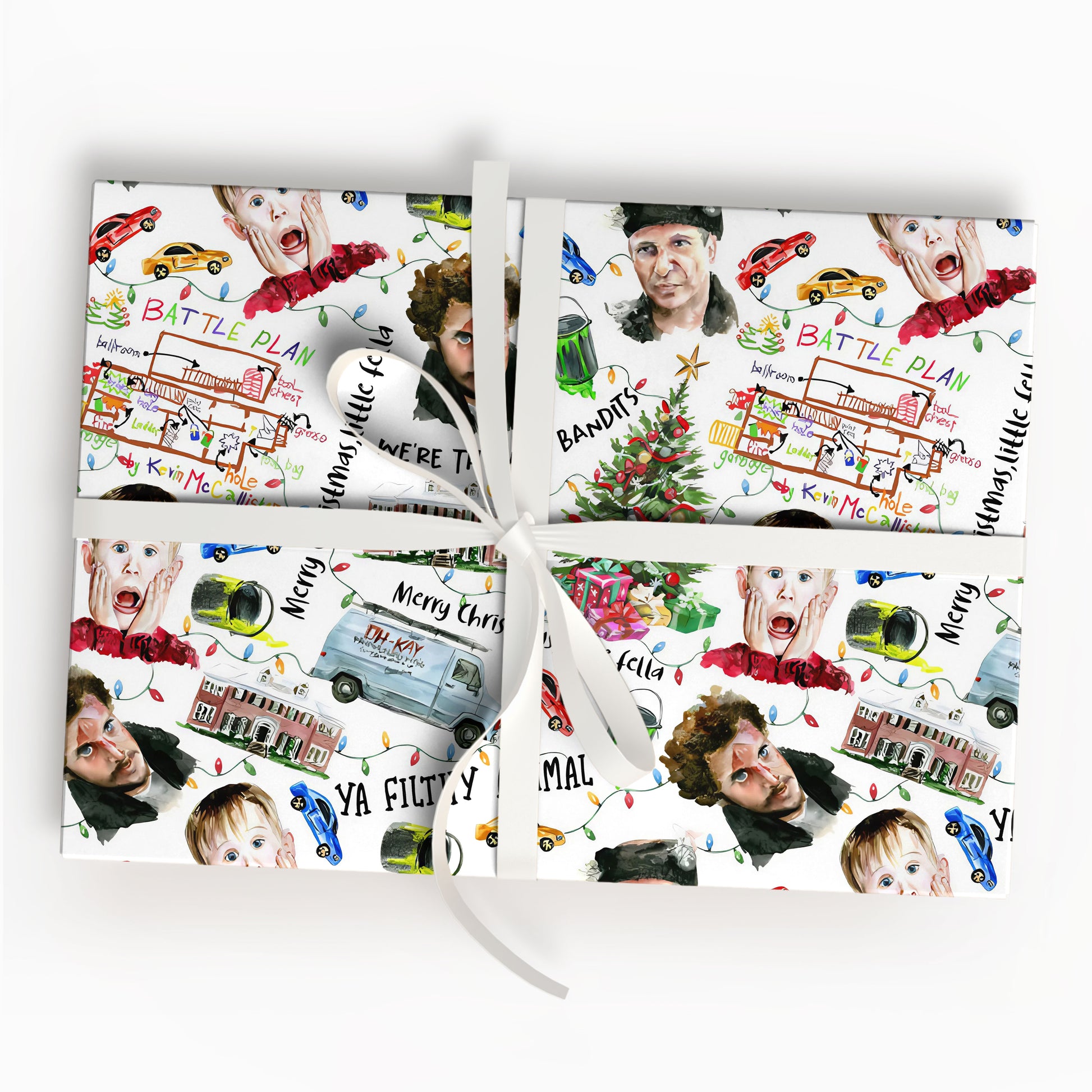 Christmas Movies Friends Wrap Gifts, Home Alone Wet Bandits Art Board Wrapping Paper