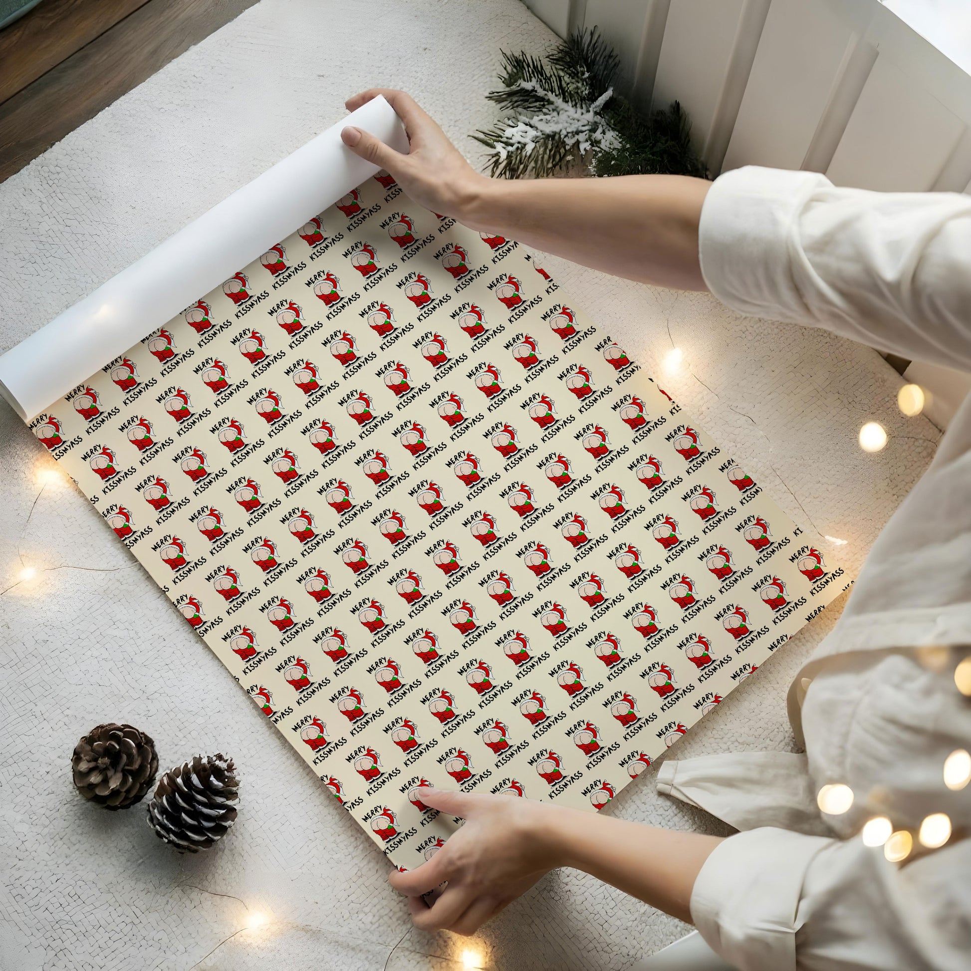 Merry Kissmyass Santa Xmas Gift Wrap with Holiday