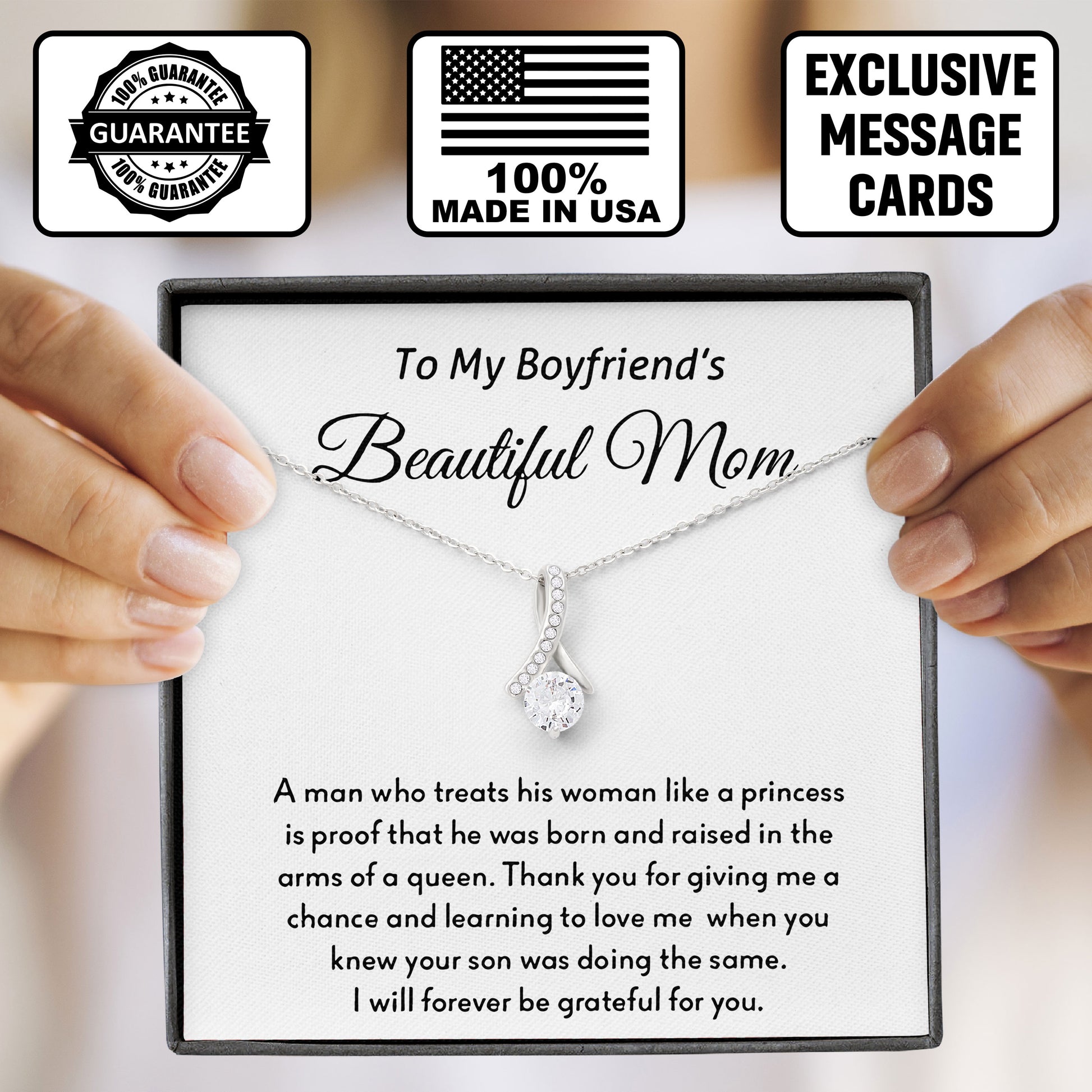 To My Boyfriend's Beautiful Mom Necklace with Loving Message